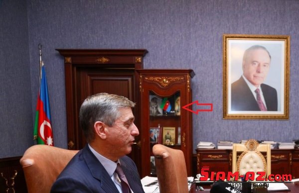 Belə ki, iş otağında olan bahalı mebel nəzərdən qaçmayıb,həmçinin dolabda yerləşdirdiyi bayraq tərs asıldığı fotolarda aydın görünür.