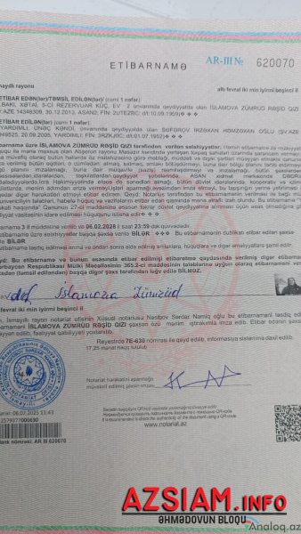 Şəhid atası Səfərov İrzəxan Həmzəxan oğlu Analoq.az-a müraciət edərək ona məxsus 0.06 ha həyətyanı torpaq sahəsinin Masazır Bələdiyyəsi tərəfindən zəbt edilərək qanunsuz ələ keçirilməsini bildirib. Qeyd edək ki, şəhid atası Səfərov İrzəxan Həmzəxan oğlu Masazır Bələdiyyəsinin 16.04.2007-ci tarixli, 17 saylı qərarına əsasən alqı – satqı müqaviləsi ilə İslamova Zümrüd Rəşid qızına verilmiş 0.06 ha həyətyanı torpaq sahəsini notarial qaydada 24.12.2004-cü ildə almışdır.