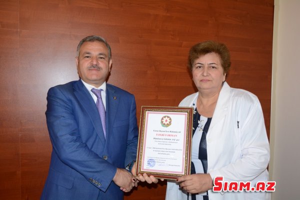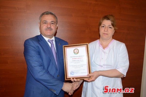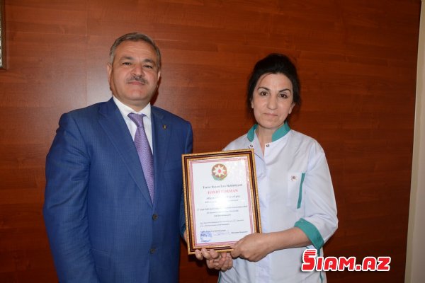 Tədbirdə bir qrup tibb işçisi işlərində fərqləndiklərinə görə rayon icra hakimiyyətinin başçısı tərəfindən Fəxri Fərman və hədiyyələrlə mükafatlandırıldılar.