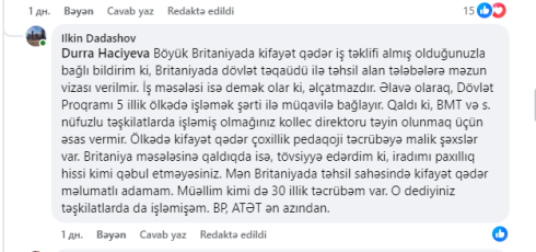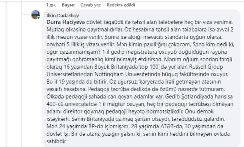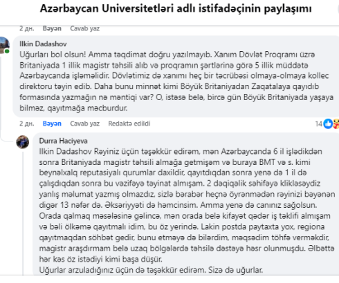 Bu sosial şəbəkələrdə müzakirələrə səbəb olub. Bəzi istifadəçilər öz fikirlərini yazıb, xarici təhsil, ölkəyə qayıdış, şəkil və qaydalarla bağlı qiymətləndirməni bölüşüblər.