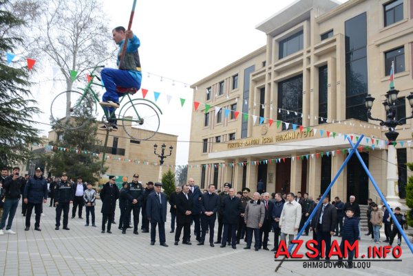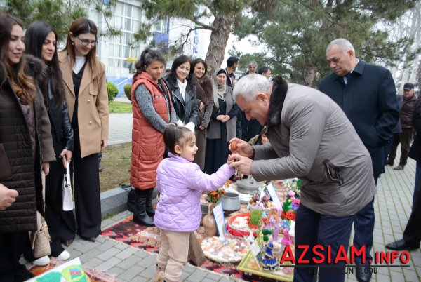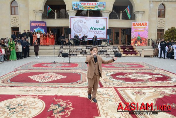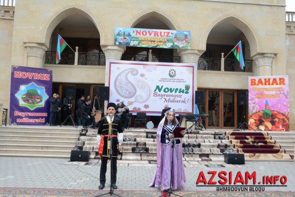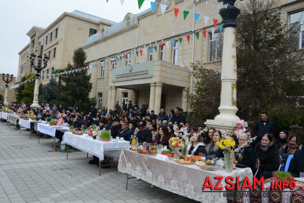 Meydanda qədimi xalça-palazlar sərilib, Novruz süfrəsi qurulub. İştirakçılar Tarix-diyarşünaslıq muzeyinin sərgisinə, məktəblilərin və Uşaq Gənclər İnkişaf Mərkəzinin bahara həsr olunmuş rəsm və əl işlərinə baxıblar. Rayon idmançılarının güləş, boks, kikboksing üzrə çıxışları, kəndirbazların ifaları, yumurta və xoruz döyüşləri maraqla izlənilib. Meydanda Novruza xas olan bütün təamlar — yuxa, kətə, qovurğa, aş və müxtəlif şirniyyatlar süfrələrə düzülüb. Müdrik el ağsaqqalı Dədə Qorqud və Bahar qızı iştirakçıları salamlayaraq onlara xeyir-dua verib, Keçəl və Kosanın çıxışları tədbirə xüsusi rəng qatıb.