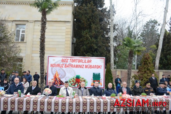 Bu il xalqımızın iki müqəddəs bayramının – milli mənəviyyatımızın rəmzi olan Novruzun və saflıq, xeyirxahlıq ayı olan Ramazanın eyni vaxta təsadüf etməsi Tərtər rayonunda ikiqat bayram sevinci yaşadıb. Tərtərlilər xalqımız milli-mənəvi dəyərlərimizi özündə yaşadan Novruz bayramı ilə müqəddəs Ramazan bayramını bir yerdə, böyük ruh yüksəkliyi ilə qeyd edir.Tərtər Rayon İcra Hakimiyyətinin və Qarabağ Regional Mədəniyyət İdarəsinin Tərtər nümayəndəliyinin birgə təşkilatçılığı ilə keçirilən tədbirdə Tərtər Rayon İcra Hakimiyyətinin başçısı Müstəqim Məmmədov, hüquq-mühafizə orqanlarının rəhbərləri, məhkəmə sədrləri, YAP rayon təşkilatının sədri, idarə, müəssisə və təşkilatların rəhbərləri, kollektivləri, şəhid ailələri, qazilər, yerli nümayəndələr və rayon sakinləri iştirak ediblər.