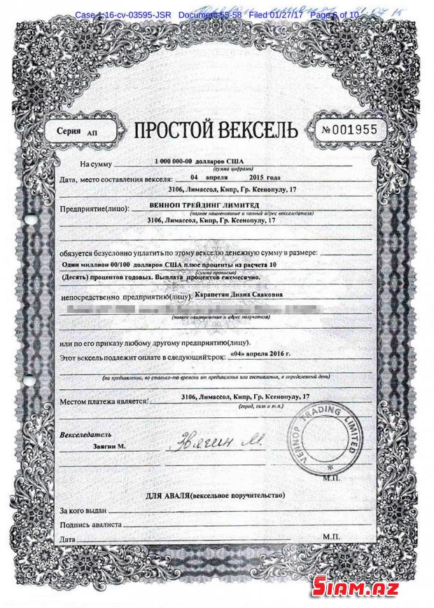 "Probiznesbank"ın idarə heyətinin keçmiş sədri JeleznyakAvaqumyan özü Nyu-York məhkəməsinə deyib ki, milyonlarla dolları nəğd şəkildə Leontyevin və Jeleznyakın adamlarına çantalarda verirdi, əvəzində onlar oğlu Karenin adına rəsmiləşdirilmiş veksellər təqdim edirdilər. Bir il sonra veksel geri qaytarılırdı, dollarla dolu çantalar isə bir az ağırlaşaraq Avaqumyana qayıdırdı. 2005-ci ilə qədər Avaqumyan bankirlərlə bu qayda ilə problemsiz işləyib, ancaq bankın lisenziyası alınanda veksellər üzrə ödəmələr dayanır. Nəticədə bankirlər Avaqumyana və şirkətinə 100 milyon dollar borclu qalırlar. Və beləcə onların arasında məhkəmə çəkişməsi başlayır.